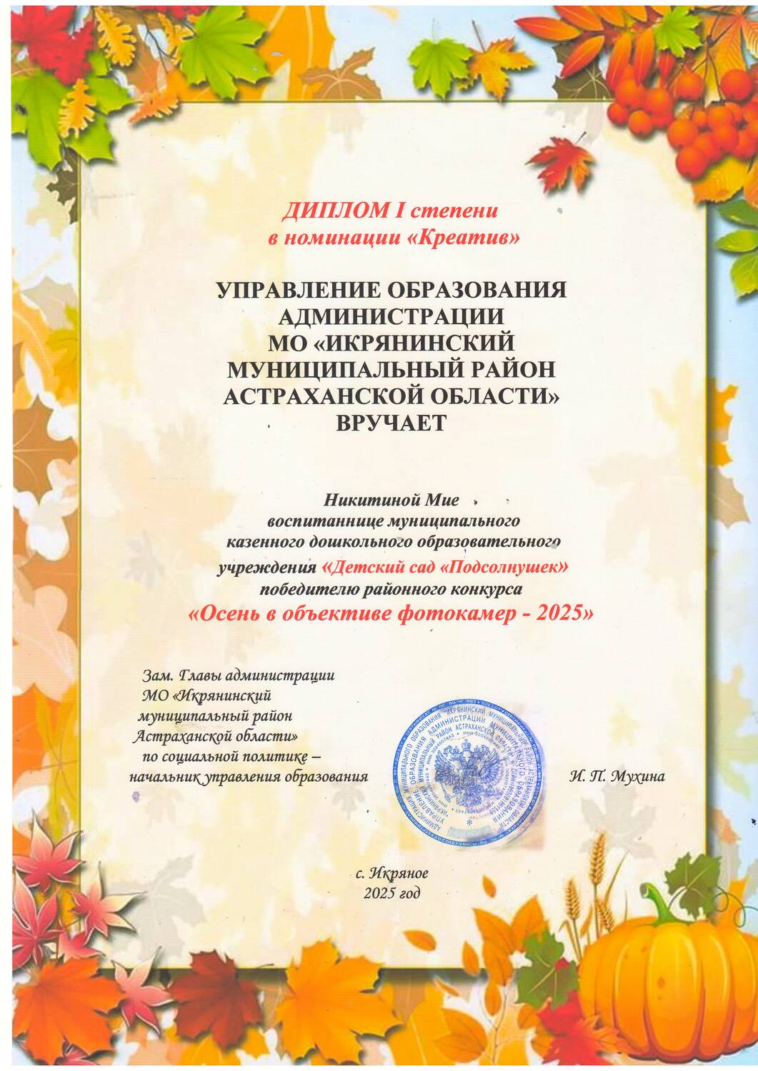 Благодарственные письма и дипломы МКДОУ д/с "Подсолнушек"